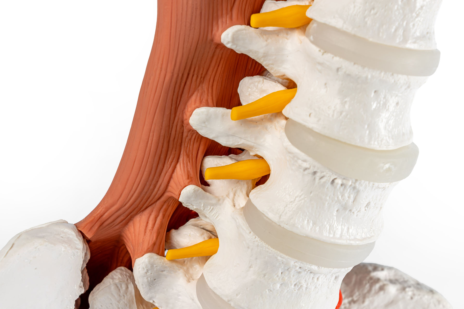 Das Modell zeigt die oberflächliche, tiefere und tiefe Muskulatur der Lendenwirbelsäule in detaillierter Ausführung. Zusätzlich sind das Rückenmark sowie die zugehörigen Spinalnerven dieses Bereichs sichtbar dargestellt, wodurch komplexe anatomische Zusammenhänge leicht verständlich vermittelt werden können.