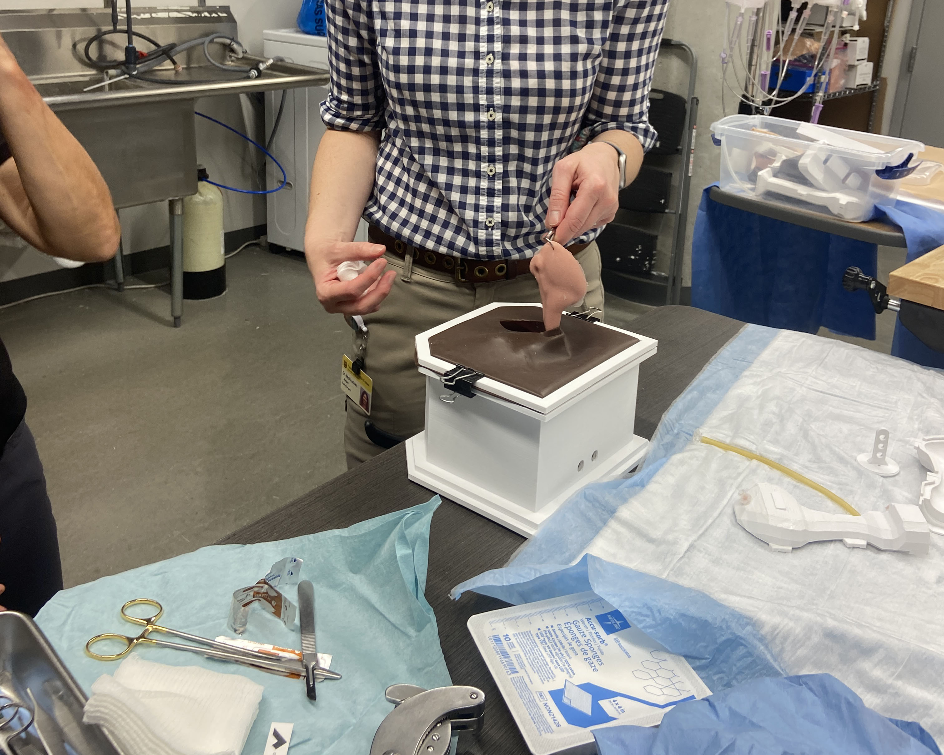 The Equine Castration Surgical Simulator is a highly realistic training model designed to teach and assess the complete surgical procedure of closed equine castration in a safe, repeatable, and controlled environment. The model features consumable fluid-filled silicone testicle and spermatic cord modules, a tissue-analogue housing, and a gravity-fed simulated blood system to validate hemostasis. Veterinary students, technicians, and surgeons can practice every step — from skin incision to ligature application and emasculator use — while receiving immediate feedback on surgical technique. The quick-deploy retention system allows for rapid module changes between users, enabling efficient training for large groups