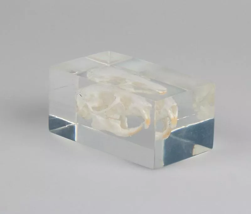 Real guinea pig skull embedded in unbreakable plastic. Embedding the skull makes it hygienic and protected. Perfect as demonstration object.