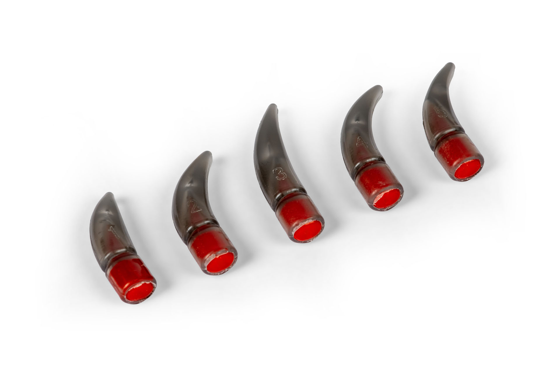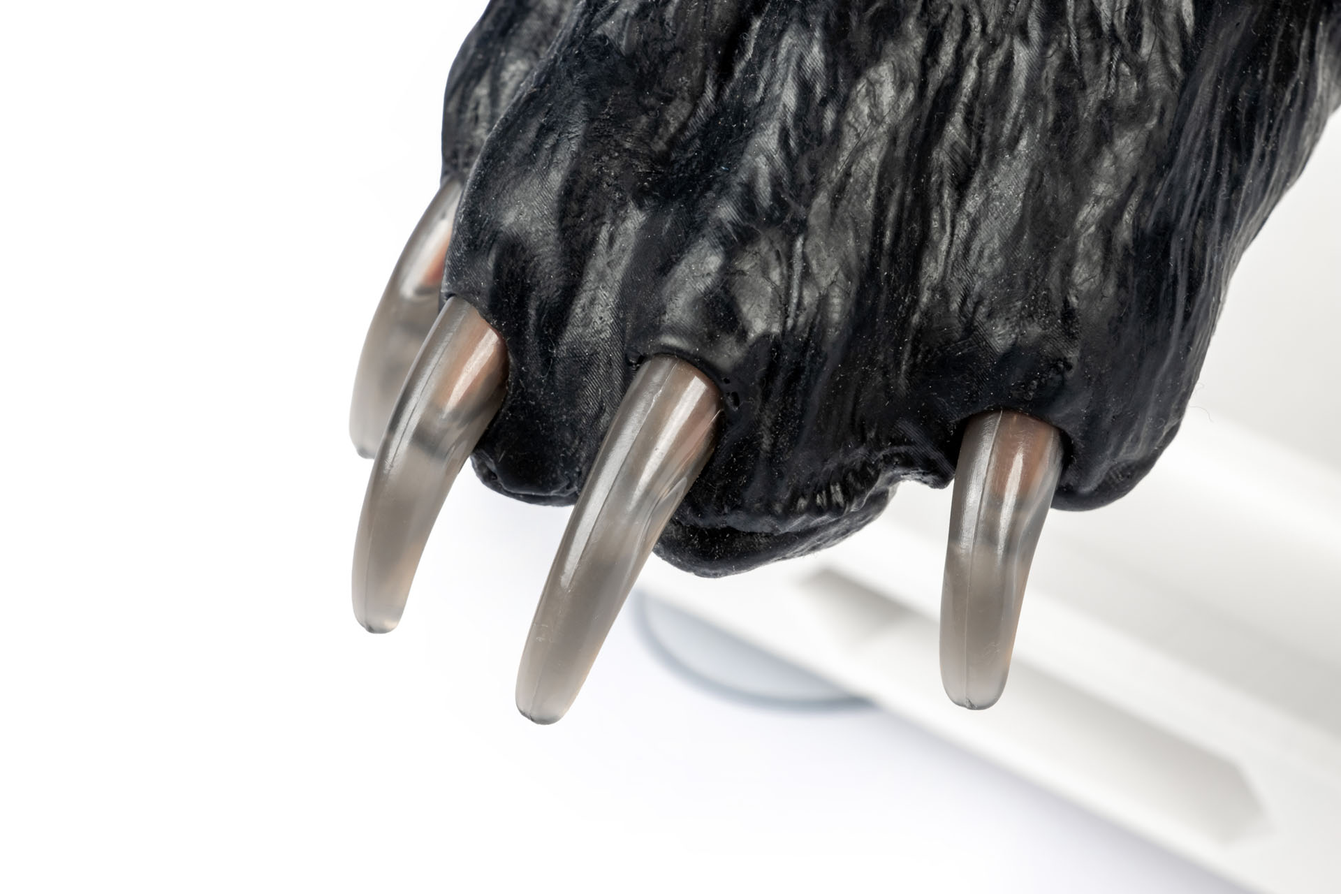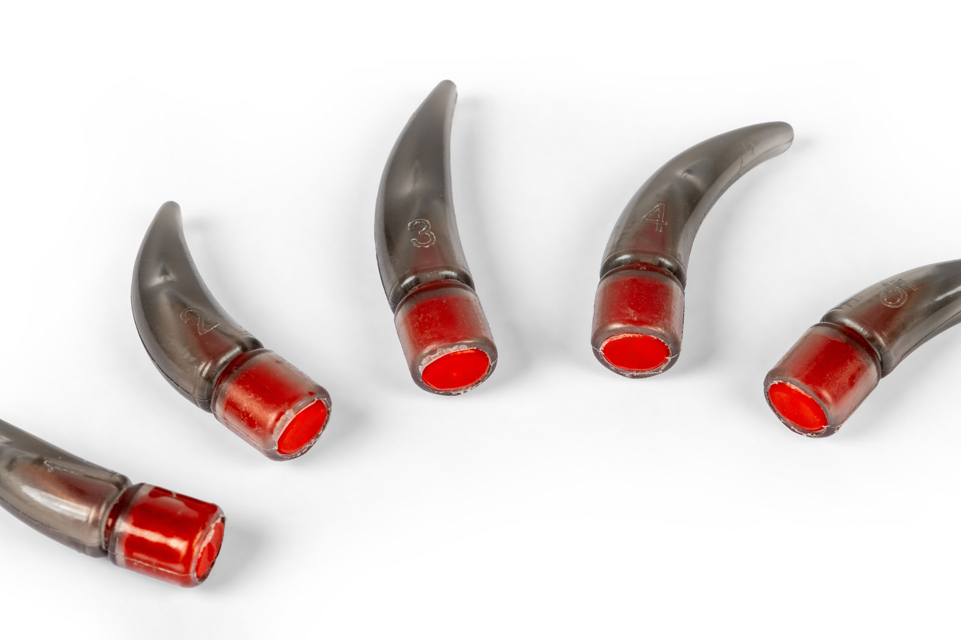 Les griffes sont remplies de faux sang. Si la coupe est trop profonde, le liquide s'écoule, permettant ainsi aux utilisateurs d'appréhender immédiatement les limites anatomiques.